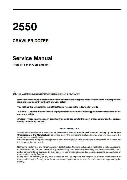 Case 2550 Crawler Dozer Service Repair Manual