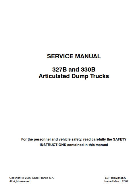 Case 327B , 330B Articulated Dump Trucks Service Repair Manual