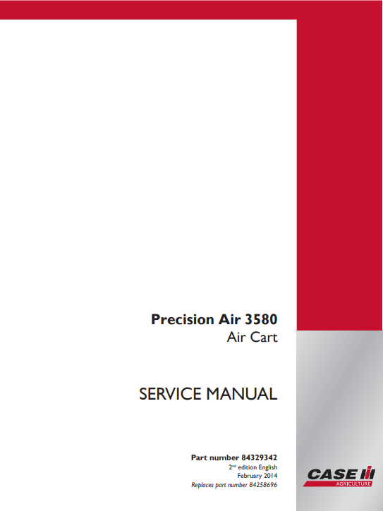 The Case 3580 Precision Air Service Repair Manual is an essential resource for technicians and enthusiasts alike, providing comprehensive guidance on the maintenance and repair of your equipment. This manual features detailed diagrams, step-by-step instructions, and troubleshooting tips, ensuring you have the knowledge needed to keep your machinery running smoothly. With its user-friendly format and in-depth information, the Case 3580 manual is a valuable investment for anyone looking to enhance their repair skills and extend the life of their air service systems