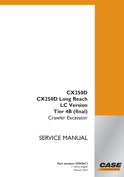 Case CX250D, CX250D Long Reach LC Version Tier 4B Excavator Service Repair Manual