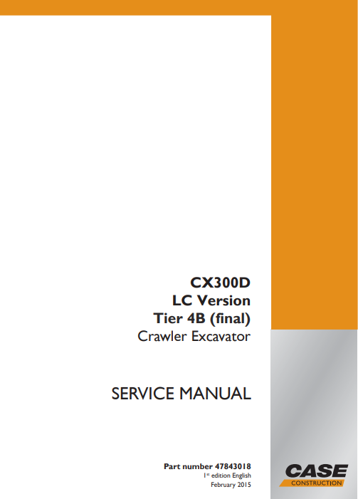 Case CX300DLC Version Tier 4B Crawler Excavator Service Repair Manual