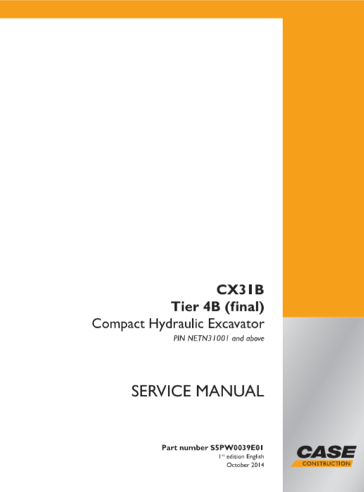 Case CX31B Tier 4B Compact Hydraulic Excavator Service Repair Manual