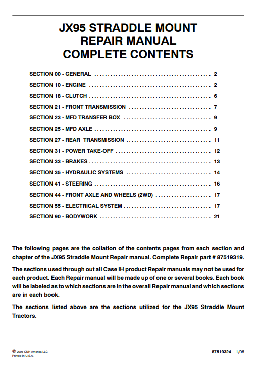 chapter of the JX95 Straddle Mount Repair manual. Complete Repair part # 87519319