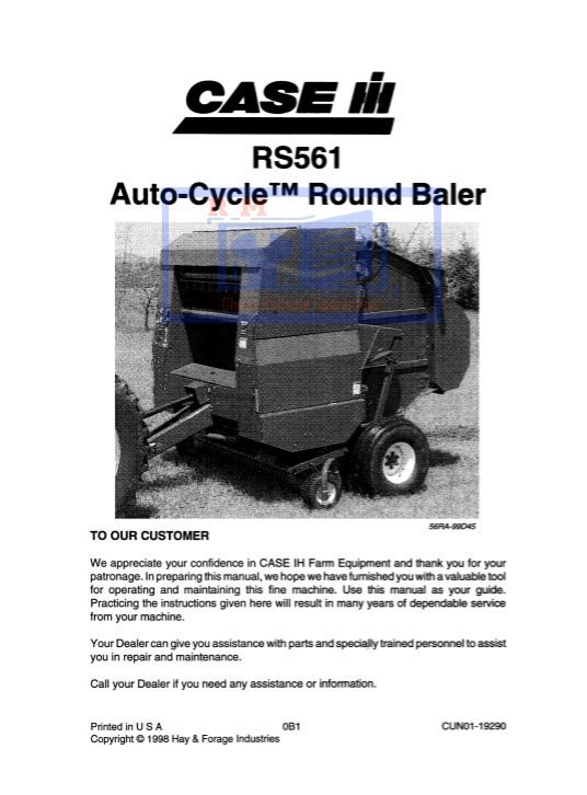 Enhance your baling efficiency with the Case RS561 AutoCycle Round Baler Operators Manual. This comprehensive guide provides essential insights and operational instructions to maximize the performance of your baler. With clear diagrams and step-by-step procedures, it ensures you can easily navigate maintenance and troubleshooting, ultimately prolonging the life of your equipment. Invest in this manual to streamline your baling process and achieve optimal results in your agricultural endeavors