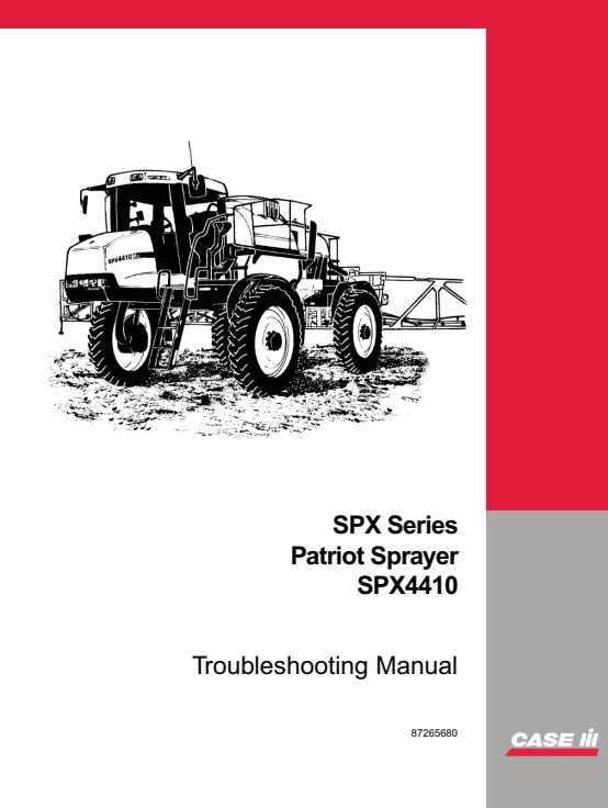 The Case SPX4410 Patriot Sprayer Troubleshooting Manual is an essential resource for operators and technicians seeking to maintain optimal performance of their sprayer. This comprehensive guide provides detailed troubleshooting steps, diagrams, and insights into common issues that may arise during operation. With clear instructions and practical solutions, users can quickly identify and resolve problems, ensuring minimal downtime and enhanced productivity. The manual covers a wide range of topics, from hydraulic system diagnostics to electrical troubleshooting, making it an invaluable tool for both seasoned professionals and those new to the equipment. Invest in the Case SPX4410 Patriot Sprayer Troubleshooting Manual to empower your maintenance efforts and keep your sprayer running smoothly for years to come