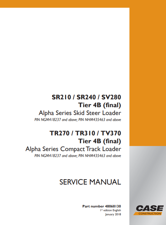 Case SR210, SR240, SV280, TR270, TR310, TV370 Skid Steer Service Repair Manual