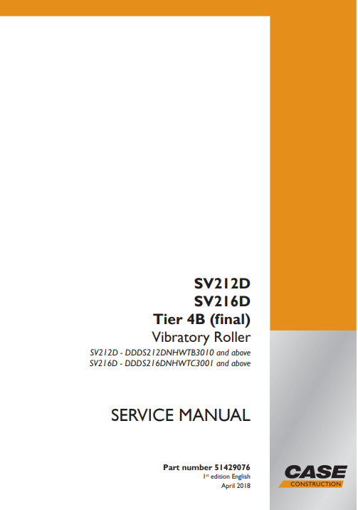 Case SV212D, SV216D Tier 4B Vibratory Roller Service Repair Manual