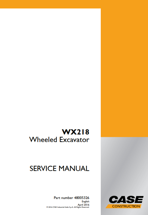 Case WX218 Wheeled Excavator Service Repair Manual