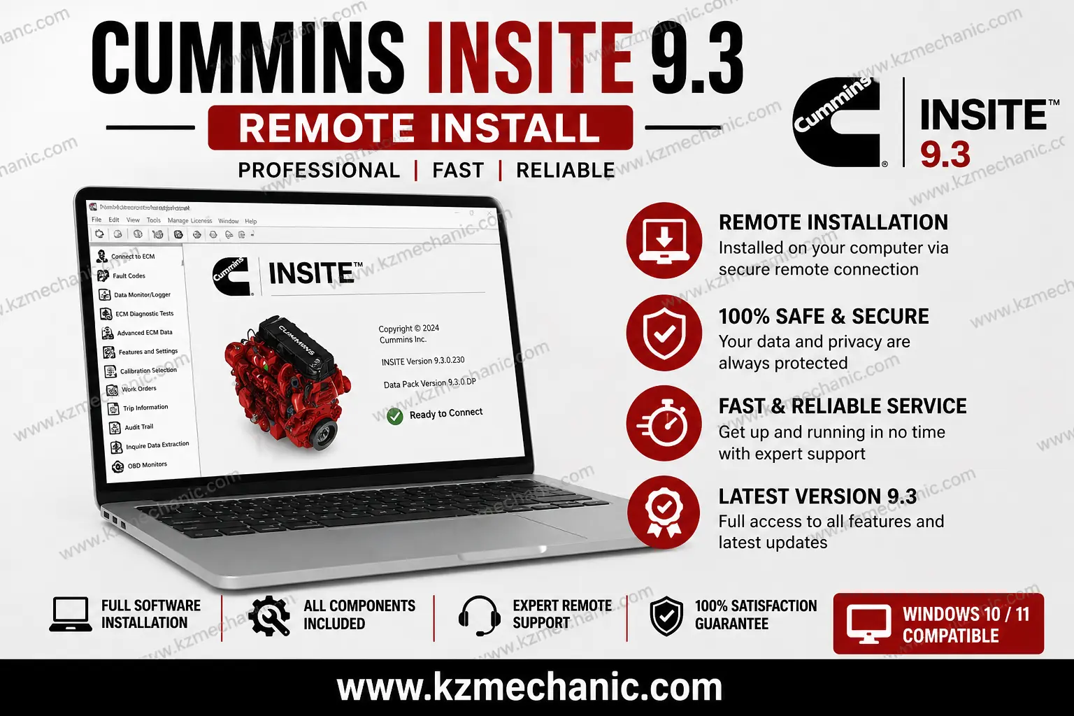 Get Cummins Insite 9.3 Pro Full Version with ZPIT Password Remover and Unlimited Fleet Access, professionally installed on your computer via secure remote connection. This is a complete diagnostic solution for Cummins engines—fast, reliable, and ready to use.