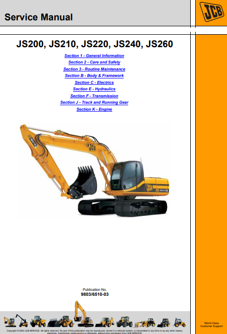 JCB Excavator JS200, JS210, JS220, JS240, JS260 Service Repair Manual