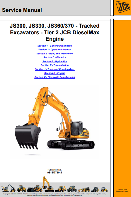 Original Factory Service Repair Manual for the JCB JS300-JCB JS330-JCB JS360-JCB JS370 Excavators. This manual is very detailed and contains all the official JCB manufacturer specifications, troubleshooting, repair instructions step by step with illustrations and wiring diagrams. Simple to complicated repairs can be completed effortlessly with the information provided. It is 100 percent complete and intact. The manual is specifically written for the DIY as well as the experienced mechanic