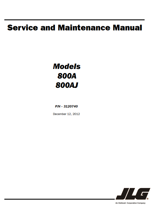 JLG Lifttruck 800A , 800AJ Service and Maintenance Manual